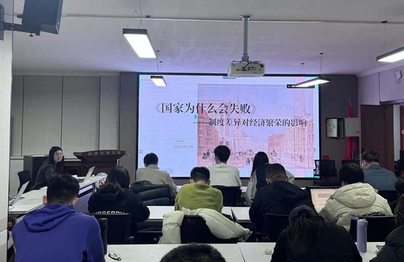 第二位分享的同学是23级西方经济学专业研究生郝素丽同学,分享的书目是《国家为什么会失败:制度差异对经济繁荣的影响》,该书的作者是达龙・阿西莫格鲁。观察各国发展,可见繁荣与滞后之分。本书研究历史数据和案例,揭示制度差异为关键。包容性制度激发社会活力,促进国家繁荣;汲取性制度则导致资源不均和权力集中,阻碍经济。这表明,公正的制度是国家繁荣稳定的基石。要实现经济持续增长和社会稳定,必须建立良好制度体系,创造有利经济发展环境。