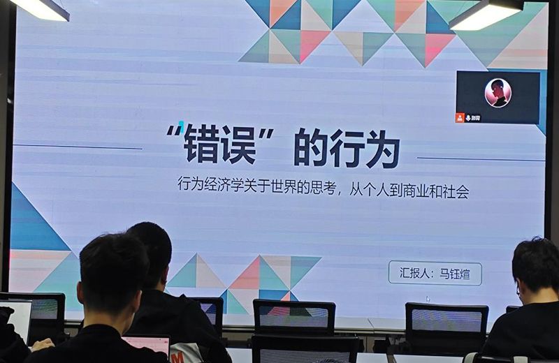 最后一位分享的同学是24级西方经济学专业研究生马钰煊同学分享查德・塞勒的《“错误”的行为》。这本书颠覆了传统经济学的“理性人”假设,通过心理账户、禀赋效应、助推策略等概念,揭示了人类决策中的非理性因素如何影响市场与社会。从股市波动到公共政策设计,行为经济学为我们提供了全新的分析工具。