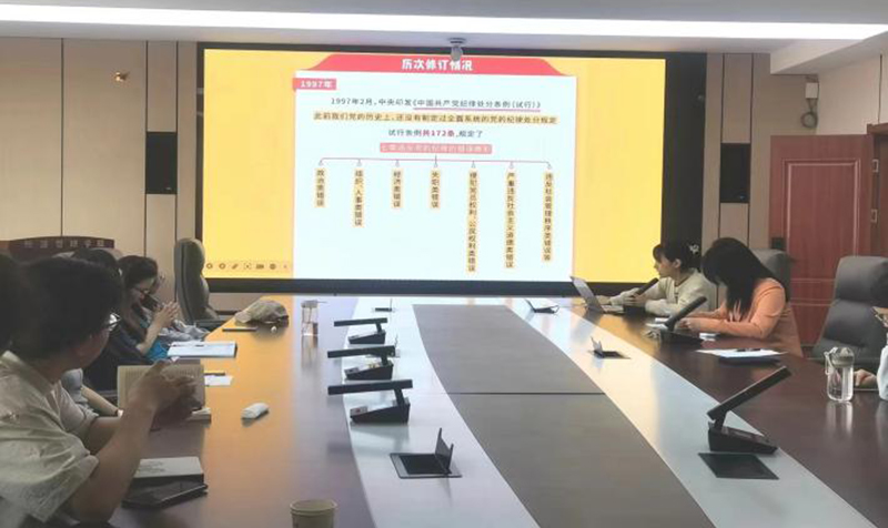 支部党员侯晨瑜领学了《中国共产党纪律处分条例》历次修订情况和《条例》的主要内容,结合实际案例介绍了政治纪律、组织纪律、廉洁纪律、群众纪律、工作纪律和生活纪律的含义以及违反相关纪律的规定。