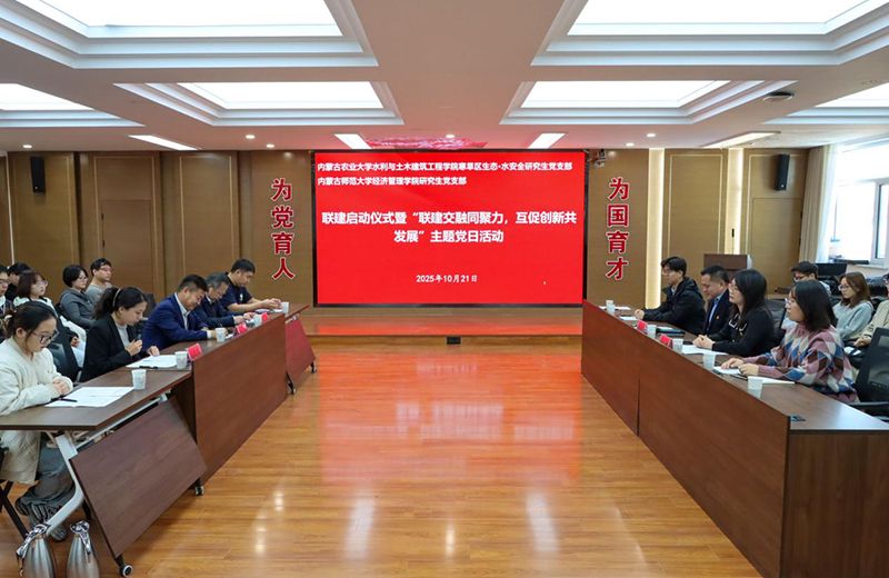 研究生党支部与内蒙古农业大学水利与土木建筑工程学院寒旱区生态・水安全研究生党支部在内蒙古农业大学水利楼502联合举办联建启动仪式暨“联建交融同聚力,互促创新共发展”主题党日活动。双方学院领导班子成员、党支部书记、党员代表参加活动。